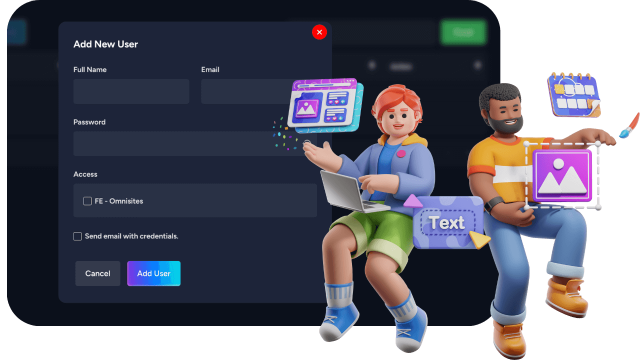 The “Team Member Access” feature allows you to create access to the OmnisitesAI software for your team members to your own account. This allows team members to log into the account and perform tasks on behalf of you.