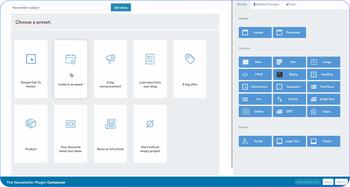 Create newsletter templates with your style and edit content just like you would a post in WordPress. Easily import post content from your site and schedule newsletters to be sent at the right time. Unlimited subscribers license is included.