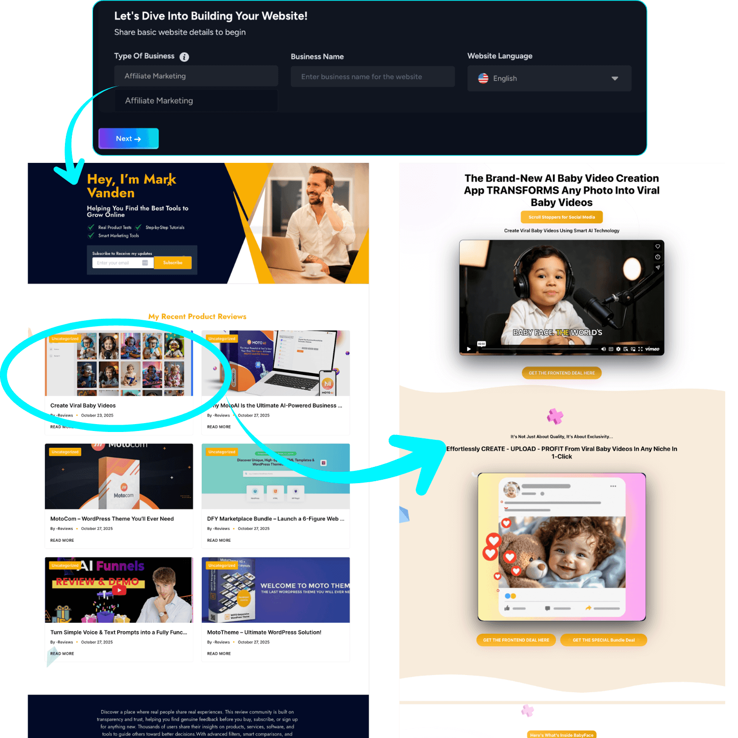 It finds viral trending video content online you can drive traffic with, lets you plug in affiliate or CPA offers, hosts the funnels plus bonus/lead magnet assets, and auto-generates social posts and copy to drive free traffic.